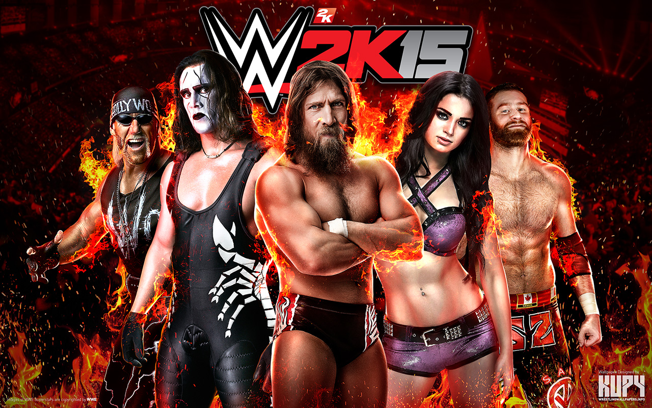 Today’s wallpaper features some of the past, current and upcoming wrestlers that are included in the game. You have Hollywood Hogan and Sting for the legends, Sami Zayn for NXT, Paige for the WWE Divas division and of course, the hottest WWE Superstar, before he got injured, for the 1st half of 2014 – Daniel Bryan. The leading provider for your fix of WWE wallpapers just gave you an appetizer of WWE 2K15!