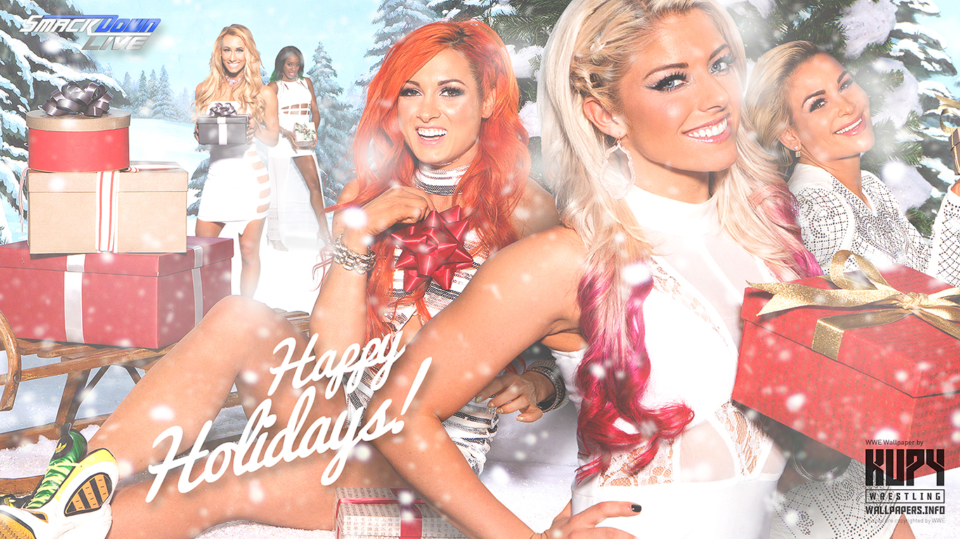 In behalf of Kupy Wrestling Wallpapers, I’m wishing you guys a joyful Christmas and happy holidays! Here are the beautiful and talented women of SmackDown Live, also wishing everyone happy holidays. Get your preferred WWE wallpaper resolution now!