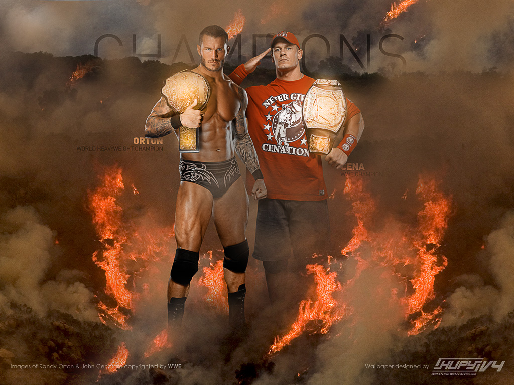 Randy Orton and John Cena as Champions wallpaper
