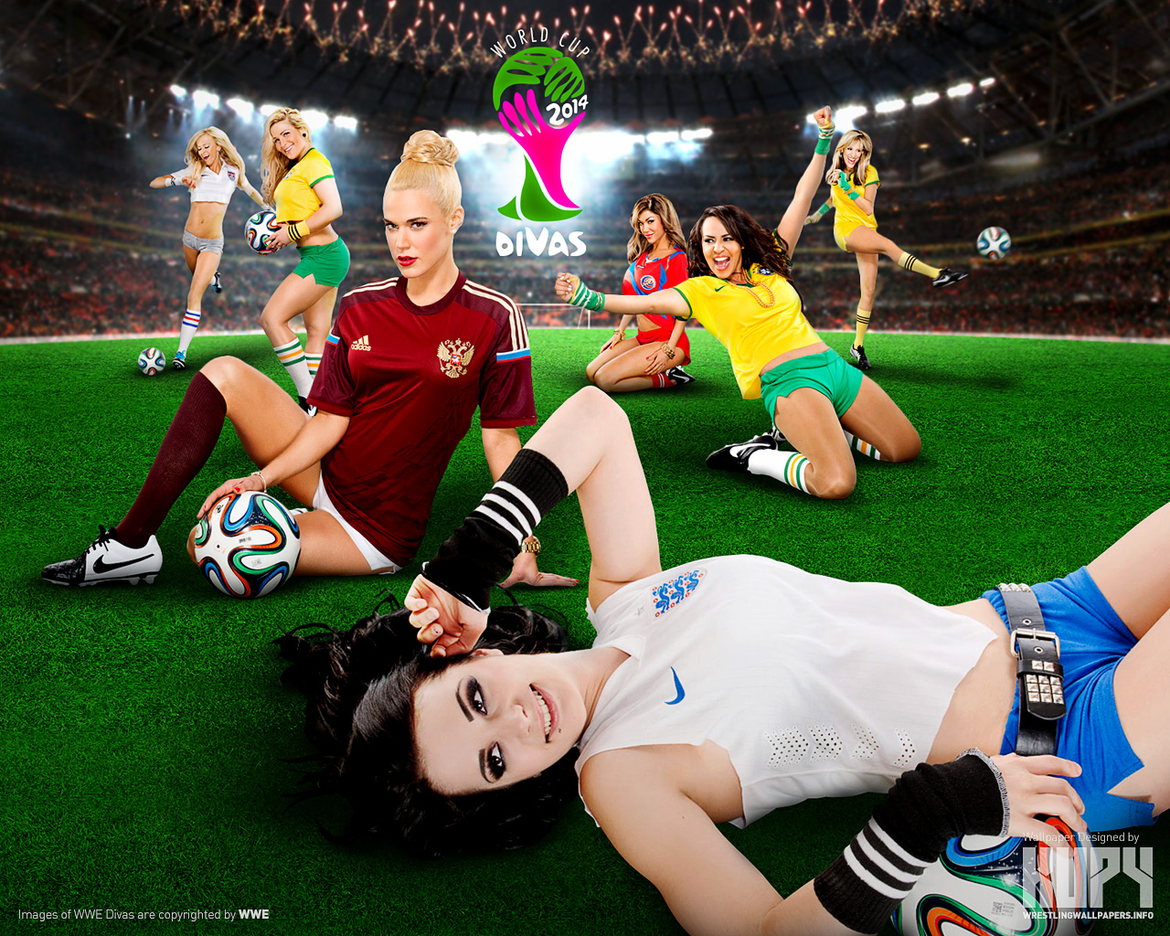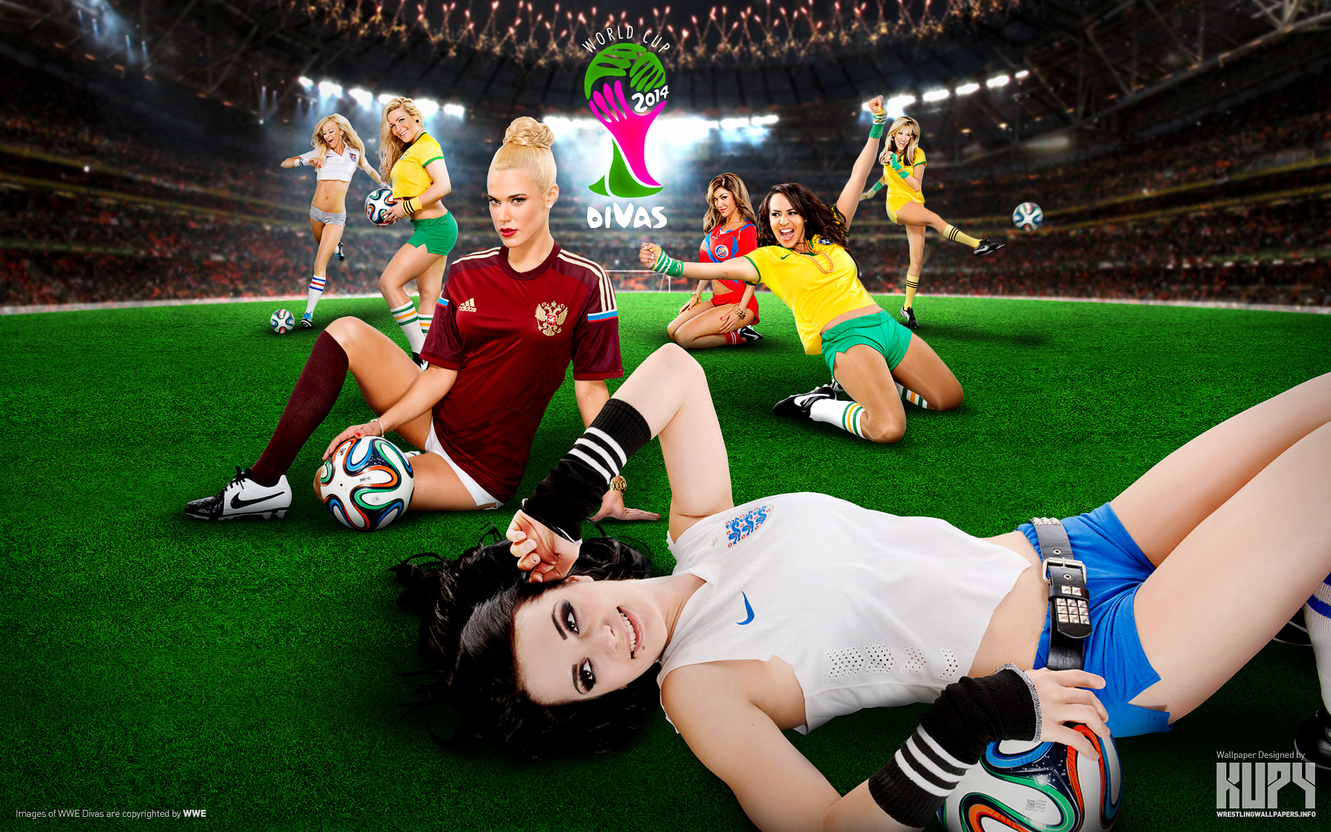 Get this special Divas wallpaper celebrating the World Cup fever! Like Kupy Wrestling Wallpapers on Facebook!