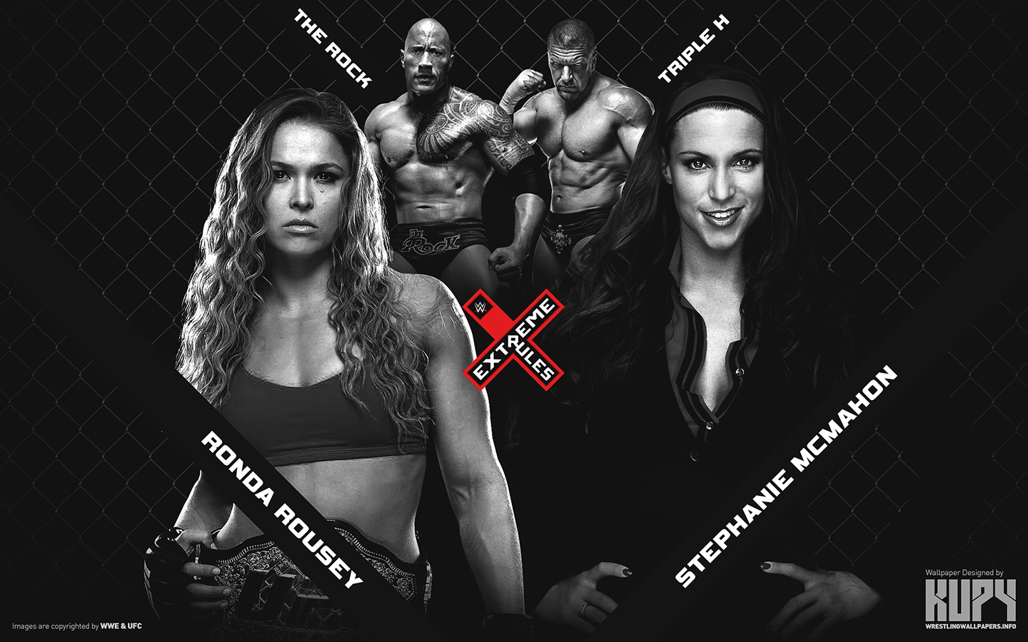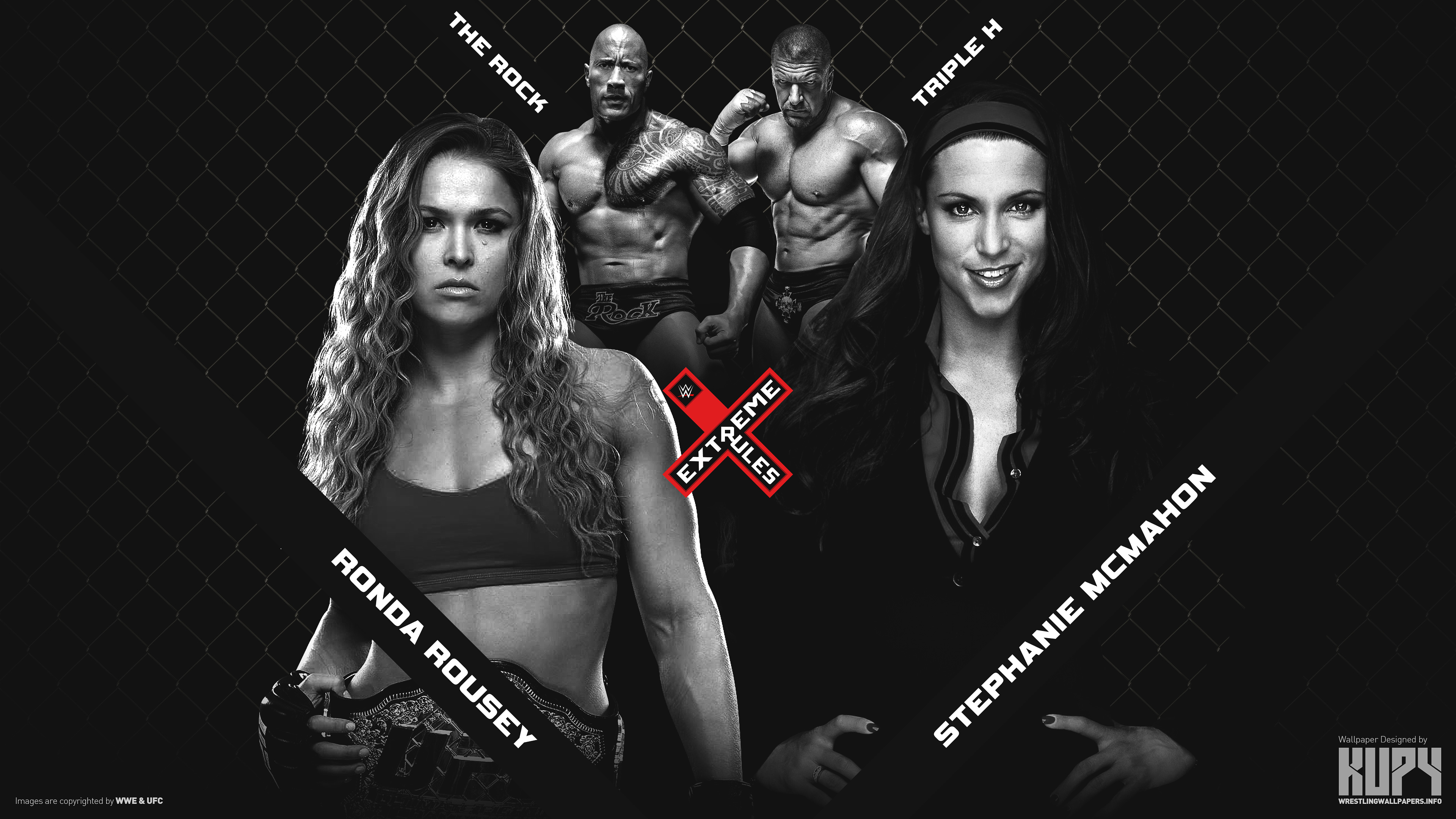 Extreme Rules Steel Cage Mixed Tag Match: Stephanie McMahon & Triple H vs. Ronda Rousey & The Rock wallpaper